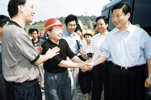 习近平同志到集团调研,与公司董事长张剑星亲切握手